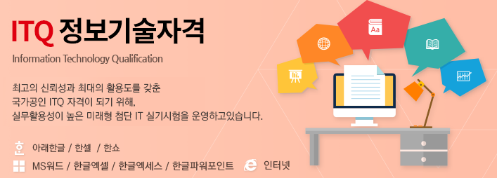 ITQ 자격증(Information Technology Qualification)은 한국생산성본부(KPC)에서 주관하는 국가공인 자격입니다. 이 시험은 컴퓨터 활용 능력을 문서작성, 데이터 처리, 프레젠테이션 구성 능력 등을 중심으로 평가합니다. 시험 과목은 총 5개로, 한글, 엑셀, 파워포인트, 액세스, 인터넷으로 구성되어 있으며, 각 과목은 별도로 선택해서 응시할 수 있습니다.